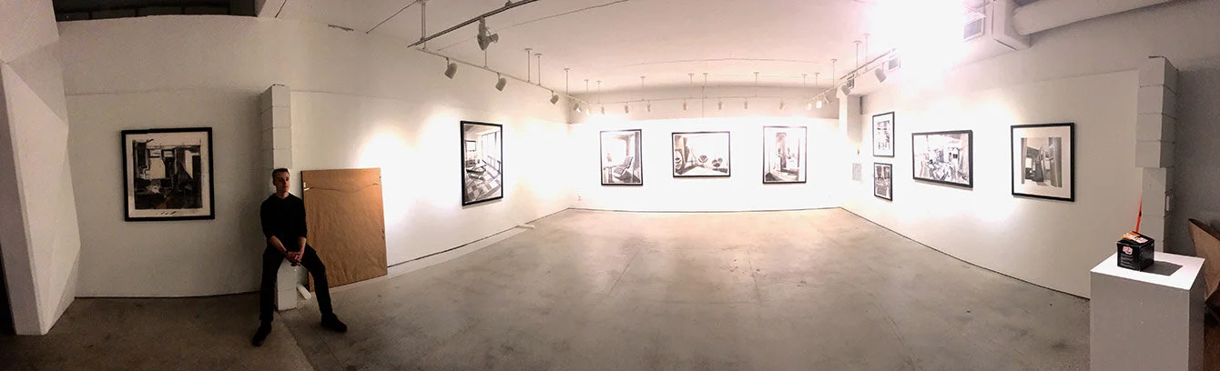“My background began with sculpture more than image-making. At a very young age, I built forts. Over the years I moved into building and remodeling homes to make a living. Later, I picked up a camera and became fascinated with capturing images of light and space. At that time, I could not draw and was terrified of the process. I went to the Art Institute of Chicago to study Photography all the while working in construction to make money. After hundreds of hours in the darkroom developing my own film and images, I began to feel too distant from the creation of the images. I wanted and needed to be more involved with the building of the spaces and surfaces. Looking back it appears obvious that I would move into painting and drawing as my medium of choice, pulling my love and knowledge of building into the practice. My process began to replicate the actual spaces and environments I was experiencing in Chicago. The process of creating began to literally show the history of the making.”